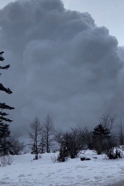 视频显示,积雪从山顶倾泻而下,气浪逐渐笼罩山谷。